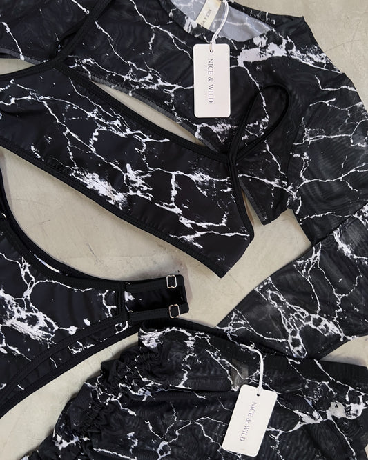 SET MIRANDA MÁRMOL NEGRO + FALDA EN MALLA