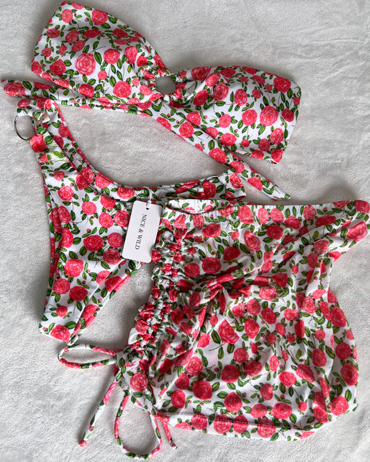 BIKINI SHANTAL ROSAS + FALDA EN MALLA