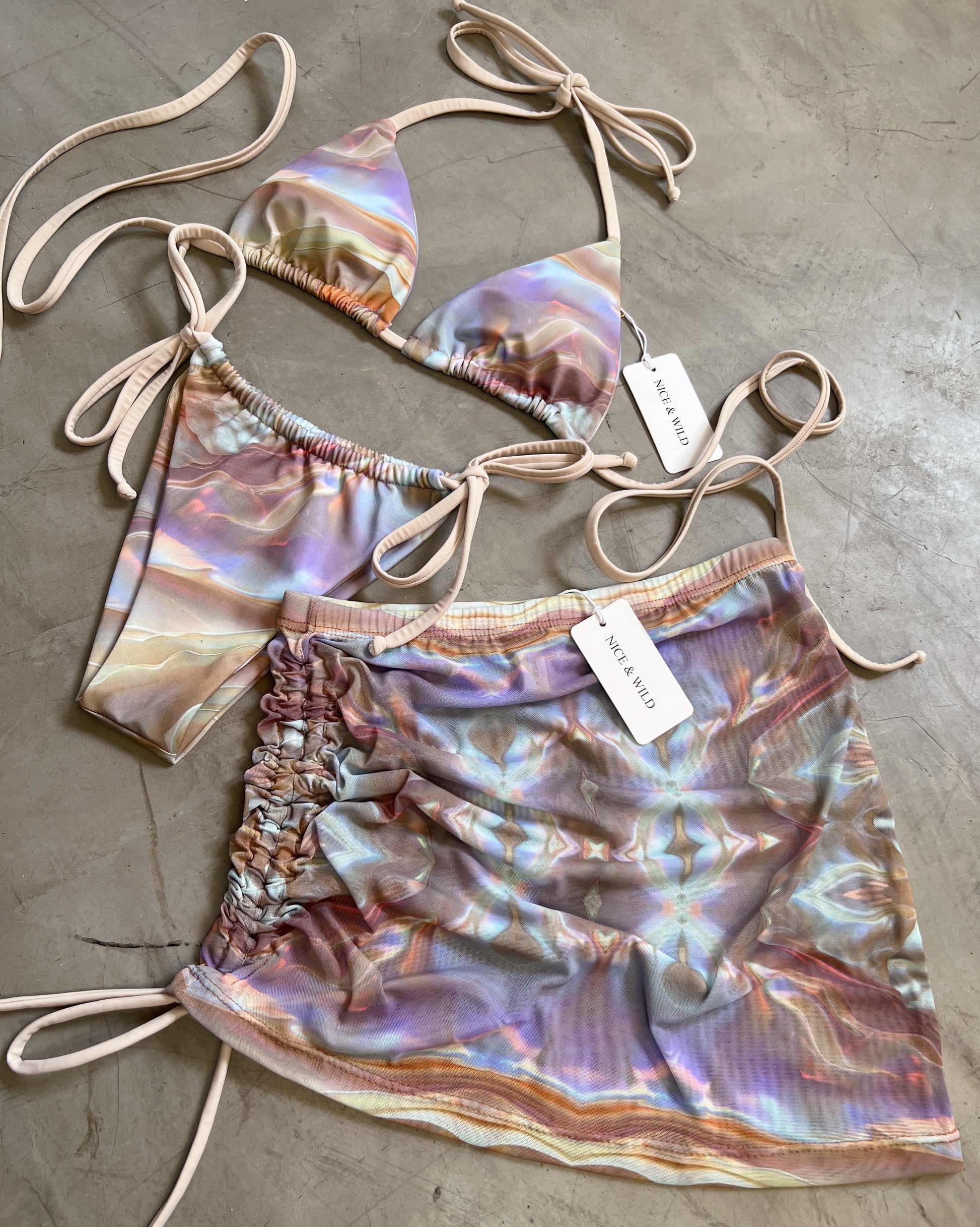 BIKINI BRONCEO NACARADO + FALDA EN MALLA